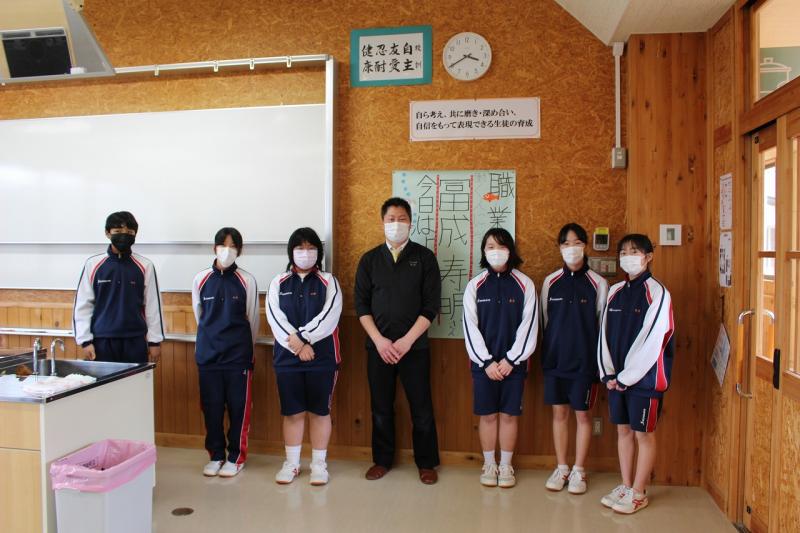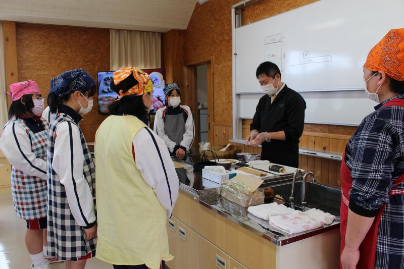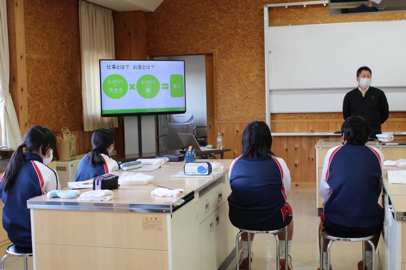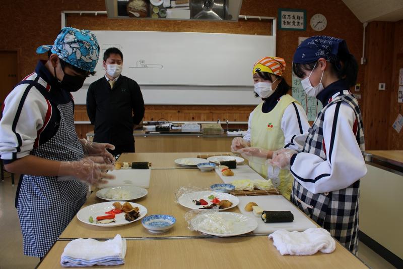 ミシュランガイドからグリーンスターをもらっている、日本料理店「富成」を営む冨成寿明さんを講師としてお招きし、「味覚の授業」や「寿司づくり体験」を通して、「働く意義」の話をしていただきました。「これからの仕事とSDGsの関係」のお話もしていただき、今、なぜ勉強する必要があるのかに結び付けてくださいました。