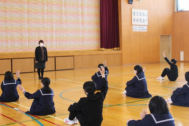 暖かい日が続き、いよいよ春を感じるようになりました。岸先生指導のもと、エアロビクスによる部活動合同トレーニングを行いました。みな、汗をかいて、楽しそうにトレーニングをしていました。