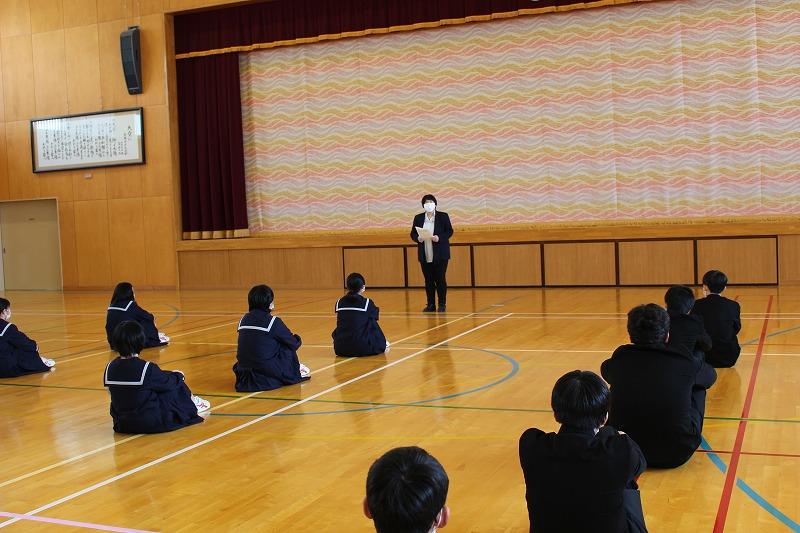 11月中旬から,お世話になっていた鎌田先生の離任式が行われました。授業では,とてもわかりやすく丁寧に教えていただきました。また,授業のみならず,質問の対応や子どもたちとテニス,バドミントンで向き合っていただき本当に感謝しております。ありがとうございました。
