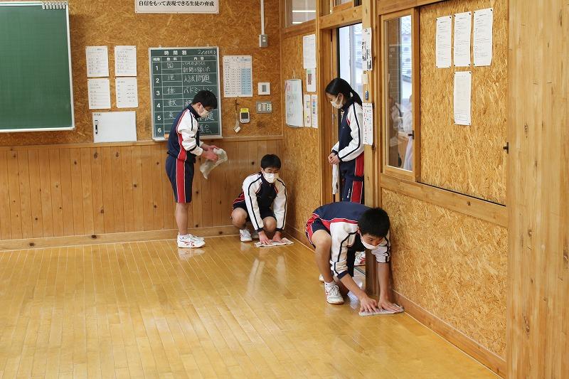 教室の汚れ落としとワックスがけを行いました。3年生は3年間の感謝の気持ちを込めて、そして1,2年生はいつも使っている教室への感謝の気持ちをこめて行いました。これからも東陽中学校で学ぶ人がきれいな環境で学べるよう清掃活動を大事にしていきたいと思います。