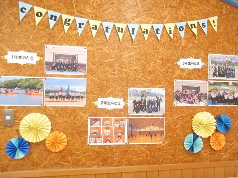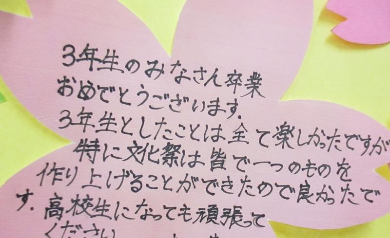 3月11日(金)の卒業式に向けて1・2年生と職員から「卒業おめでとうメッセージ」の掲示を行いました。東陽中をリードしてくれて本当にありがとうございました。