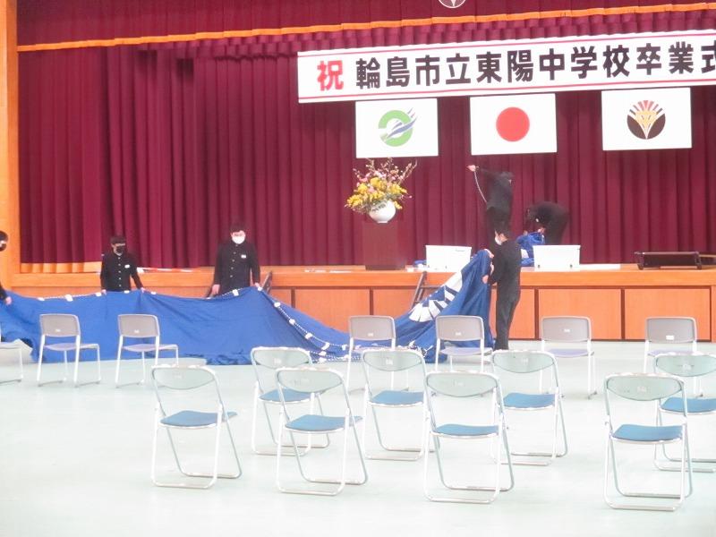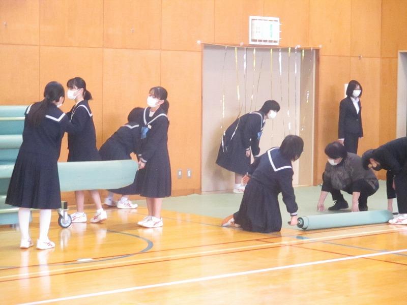 3月8日(火),9日(水)の公立高校入試が無事終了しました。合格発表は,3月16日(水)です。全員合格を心から祈っています。在校生は卒業式に向けて,会場準備をしてくれました。すばらしい卒業式になるようみんなで頑張りましょう。