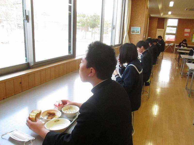 また3年生は最後の給食でした。給食後,調理員さんに3年間のおいしい給食の感謝を伝えました。いよいよ明日(3月11日)は卒業式です。3年生最後の授業になります。みんなですばらしい卒業式にしましょう!