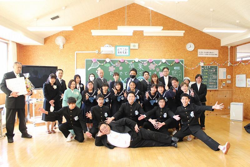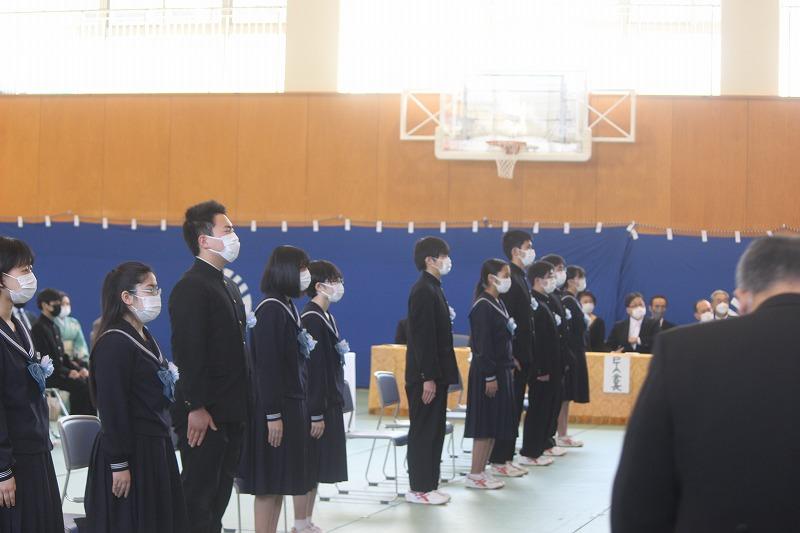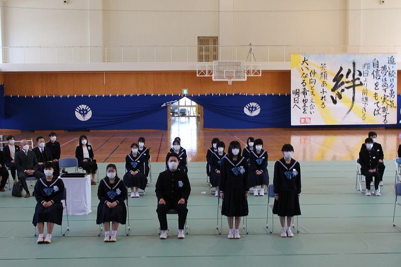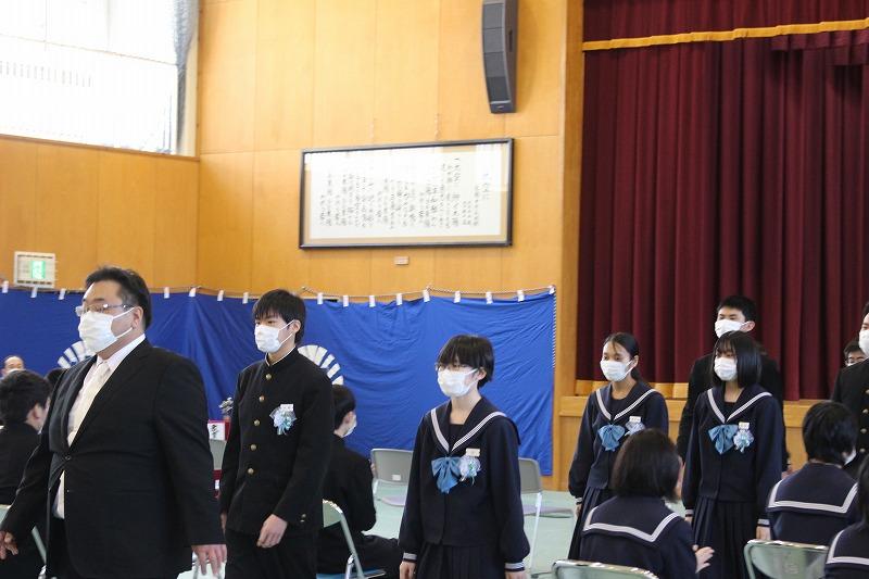 輪島市市長部局総務部長 岡本文明様,輪島市教育委員会教育委員 左古隆様,教育部長 坂口勇様をはじめ,ご来賓・保護者の方々にご臨席賜り,第12回卒業証書授与式を挙行することができました。