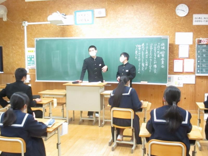 12月2日(木)、3日(金)で2学期末テストが終了しました。放課後、後期第2回生徒会専門委員会を行い、12月の努力目標と活動計画を決めました。また、2年生は12月7日(火)に県評価問題テスト(国・数・理)、1,2年生は、12月14日(火)、15日(水)に輪島市学力調査があります。毎日放課後30分、テストや入試に向け、勉強を頑張っています。