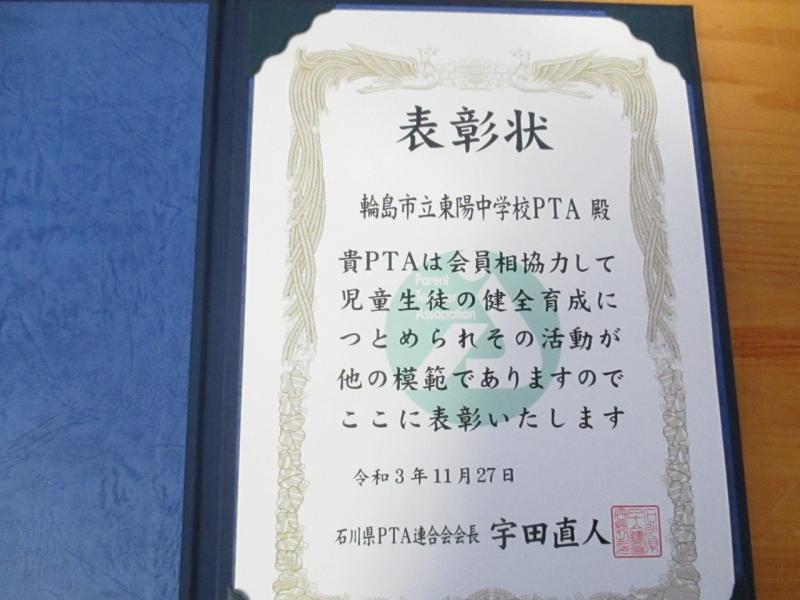 本校PTAが、令和3年度「石川県PTA連合会会長表彰」を受賞しました。保護者のみな様のご協力のおかげです。おめでとうございます。