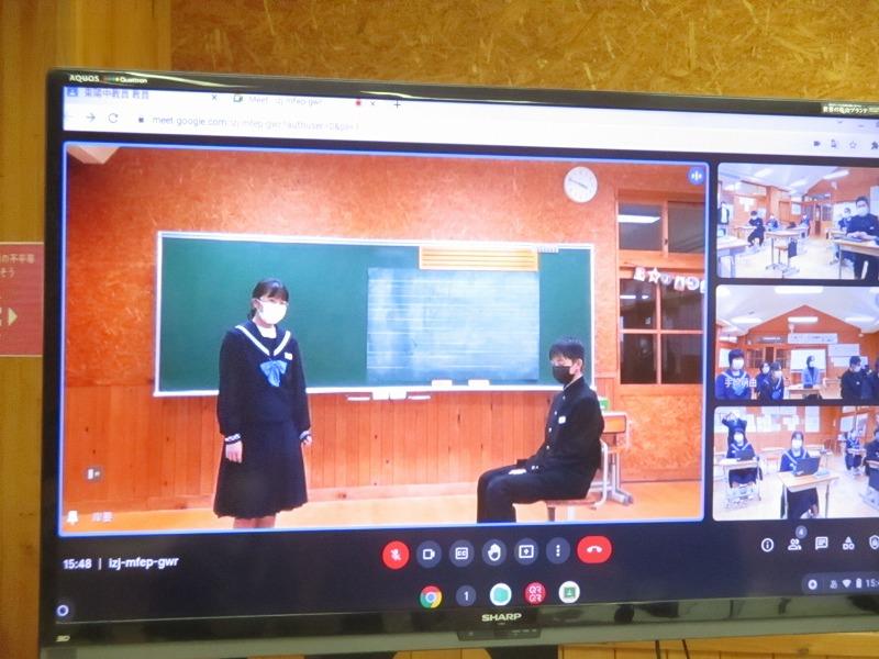 本日、後期第一回の生徒集会が開催されました。いつもであれば体育館に集まっての集会ですが今回は各教室に分かれて遠隔での集会を実施しました。先日、輪島市教育委員会よりインターネット配信カメラ機器のセットが各学校に配布され、今回、早速活用させていただきました。遠隔で行うことには密集が避けられることや遠くに細かな情報を発信できるといったメリットがある一方、接続トラブルや声が聞き取りにくいなどいくつか課題も見えました。その中でも生徒は、各委員会の目標や、生徒会執行部による挨拶と返事に関するお願い、保健・給食委員会によるSDGsの取組のお願いなど充実した生徒集会を行うことができました。また、「受験に向けて」という題で意見発表を行うこともできました。今後もこのようなICT機器を状況に応じて臨機応変に活用していきたいと思います。