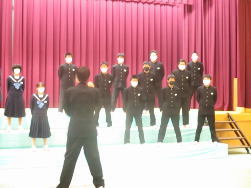 文化祭での合唱練習で地域の冨成さんに指導していただきました。お忙しい中、ありがとうございました。