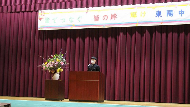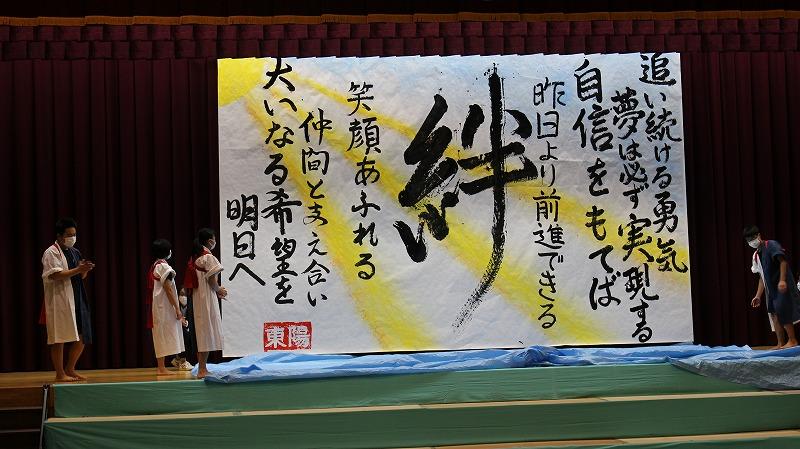 2021年11月6日 16時03分11月6日(土)、東陽中文化祭が開催されました。合唱、演劇、書道パフォーマンス、学習・意見発表、ダンスを発表しました。「より良いものにしよう、想いを伝えよう」と自ら考え、共に高め合い、自信をもって表現できていました。個々の成長を感じるすばらしい文化祭でした。保護者、地域の方々、温かいご声援ありがとうございました。