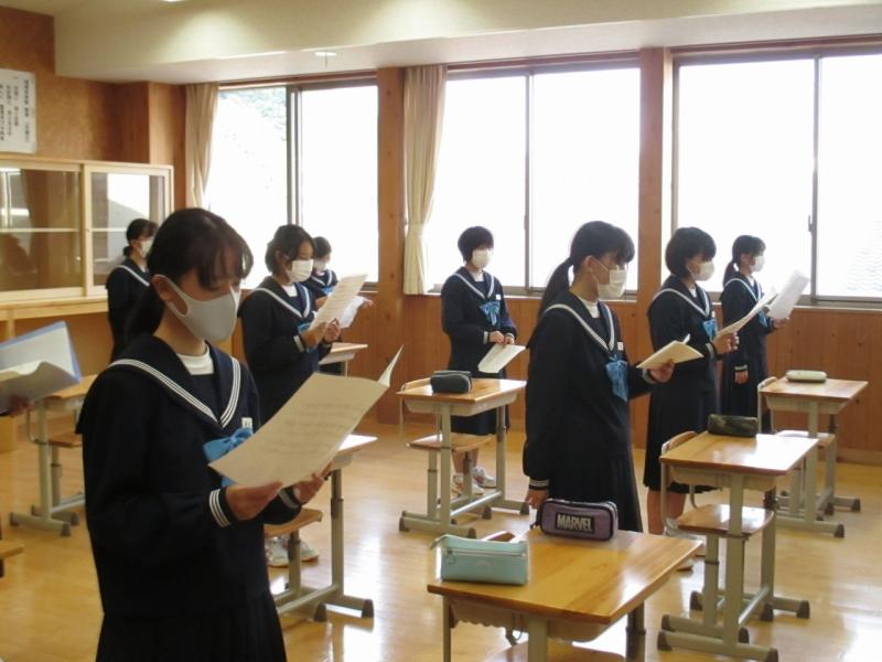 中間テストが終了し、11月6日(土)の文化祭に向け、合唱練習がスタートしました。曲目は「旅立ちの日に」です。心を一つにすばらしい合唱を期待しています。
