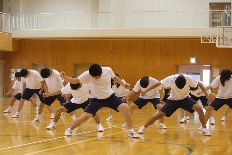 3年生が考えてくれた体育祭応援ダンスを赤団・青団に分かれて1、2年生に教える練習が始まりました。合同体育祭まで1ヶ月をきりました。みんなですばらしい体育祭にしましょう。