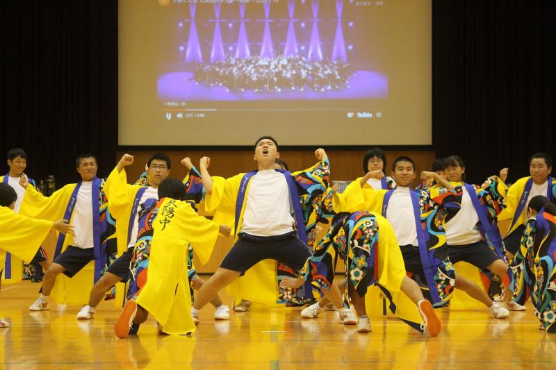夏休み最後のよさこい練習を法被を着て行いました。リードして指導してくれた3年生お疲れさまでした。体育祭での披露を楽しみにしていてください。