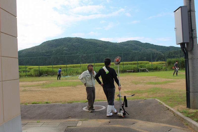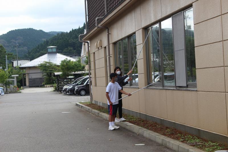 8月28日(土)、生徒と多数の保護者に参加していただき(83%)、校舎外の草刈り、校舎内の窓ふきをしていただきました。