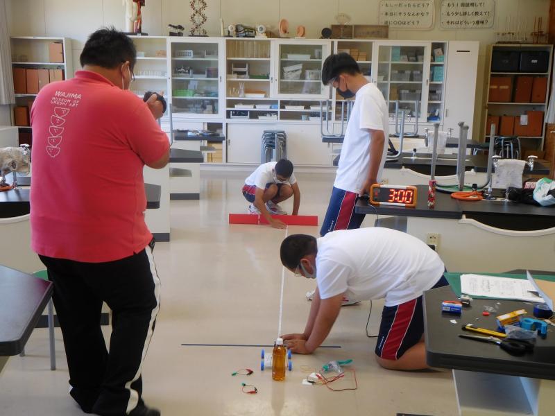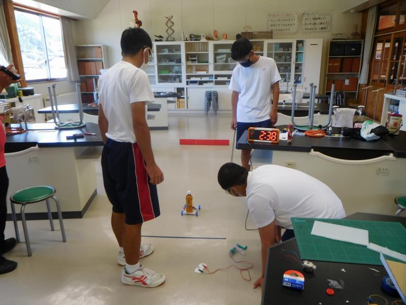 動くモーターカーを製作し、発電からゴールまでの時間を競う」です。
