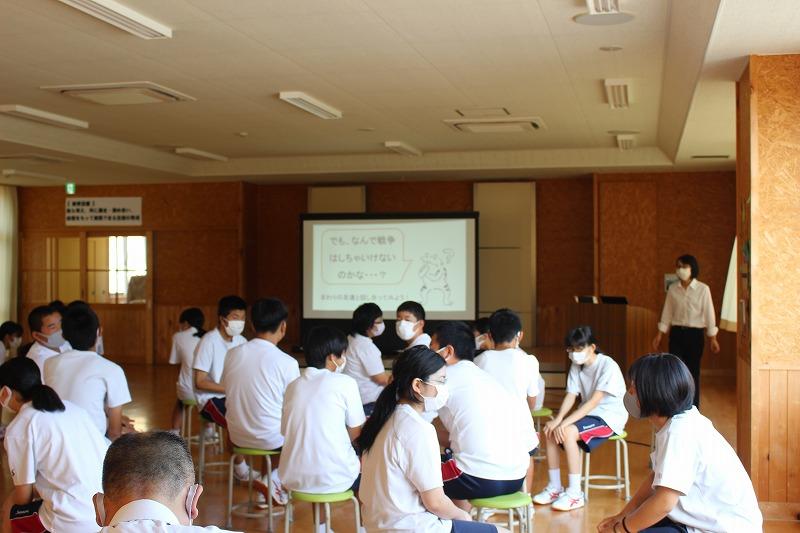 原爆の恐ろしさと今もなお、戦争に苦しんでいる子どもたちがいる事実を学び、平和な世の中を追求していこうとする姿が見られました。