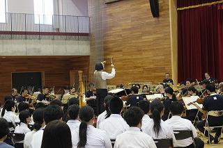 「トルコ行進曲」「大きな古時計」「マツケンサンバⅡ」など、誰もが聴いたことのある曲が、「アキラさん」の楽しいお話と、アンサンブル金沢の皆様の「目でも楽しめる演奏」により、違った曲のように聴こえました。生徒たちは、音の高低や強弱の変化により様々な感情が表現されていることを肌で感じながら、最後まで楽しんでいる様子でした。迫力あるオーケストラの演奏を間近で聴くことができ、その場にいたみんなが、とても幸せな気持ちになりました。