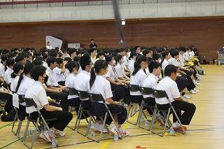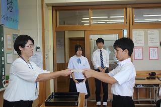 10月1日に(水)に、後期生徒会役員任命式が行われました。役員選挙で選出された生徒会長と副会長が呼名され、校長先生から任命書が手渡されました。その後、全校生徒と先生方が見守る中で後期に向けた抱負と決意が語られました。