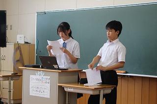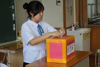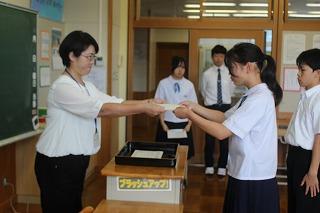 9月11日(木)に、後期生徒会役員立会演説会及び投票が行われました。会長・副会長の立候補者は、それぞれが「学校をより良くしたい」という強い意志をもち、力強く演説を行いました。堂々と意見を述べる姿が印象的でした。また、立候補者だけでなく推薦責任者や選挙管理委員の生徒も自分の役割をしっかりと果たし、主体的に活動していました。