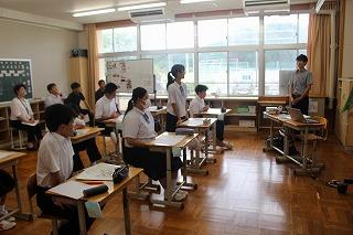 今年の文化祭は、昨年度大変お世話になった能登町立柳田中学校との合同で開催されます。今日は、オンラインでの合同オリエンテーションが行われ、生徒会長による挨拶と、スローガンやプログラム等について確認をしました。