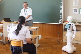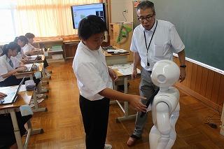 授業では、ペッパー君との触れ合い方や、プログラミングの仕組みについて詳しく教えていただきました。生徒たちは、試行錯誤しながらプログラムを構成することで、実際にペッパー君に話しかけて返事をさせたり動きをつけて喋らせたりするなど、楽しさを感じながらプログラミングを体験している様子でした。