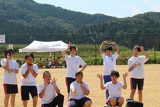 9月28日(日)に開催される小中合同体育祭に向けて、生徒たちは毎日熱心に練習に取り組んでいます。今日は、小学生と合同で「応援合戦」の練習をしました。応援団を中心に気合いのこもった元気な声がグラウンドに響き渡りました。