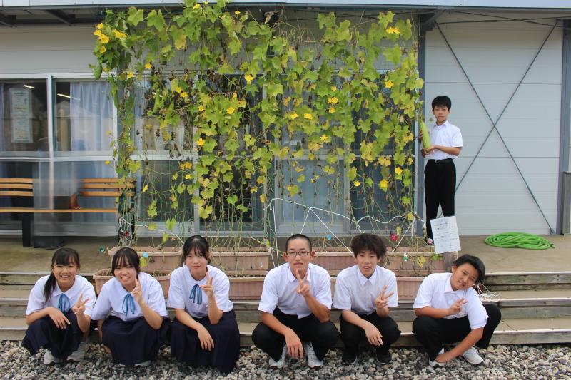 いくつもの実がなっていました‼「お手本のような実」もありました。(写真では、黒っぽく映っています。見つけてください。)暑い夏の間、地域の方に水やり等のお世話をしていただいたおかげです。ありがとうございました。収穫が楽しみです。