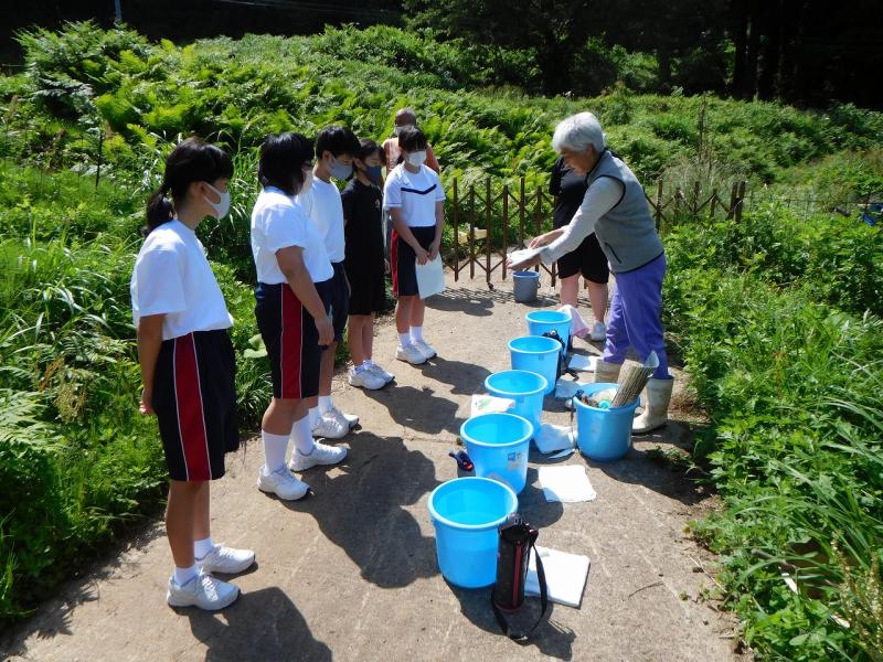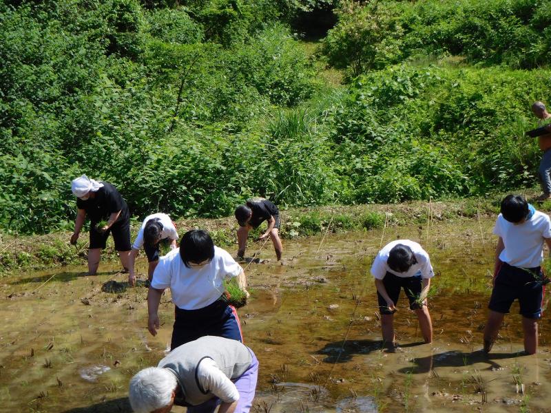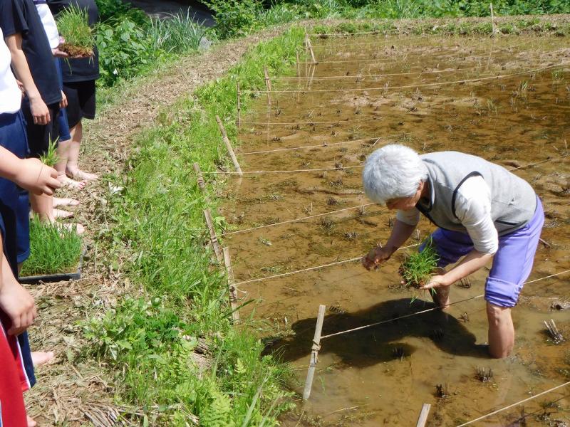 5月28日(金)晴天の下、1年生は南志見東山町の鴻さんの田んぼで、