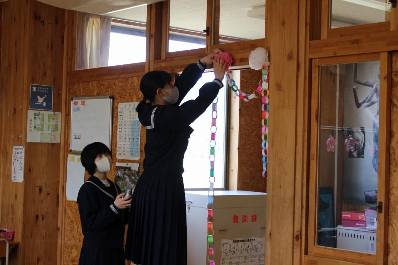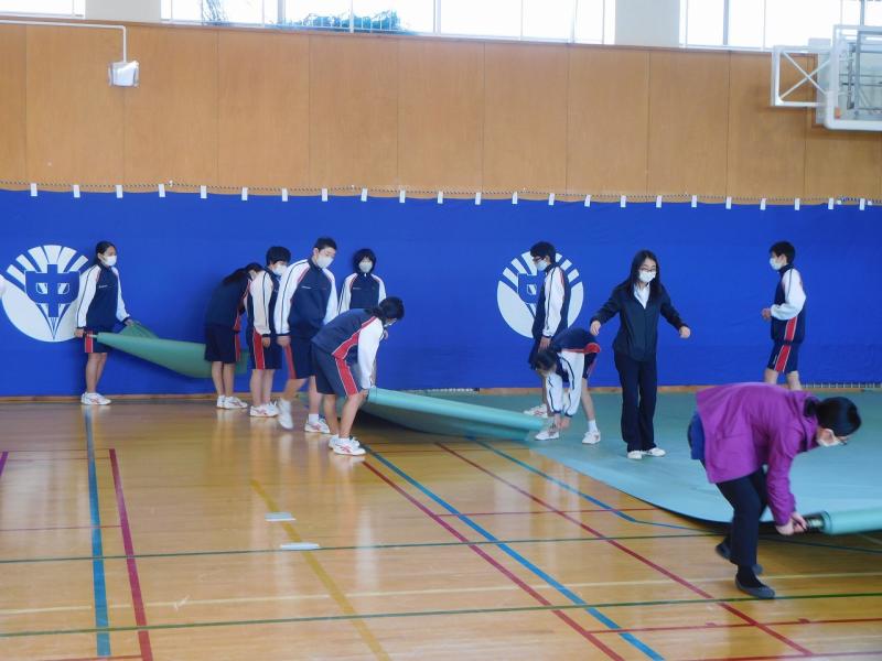 放課後、3月12日(金)の卒業式に向けて会場準備を