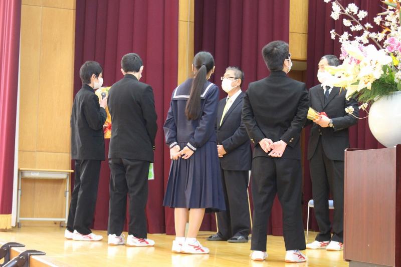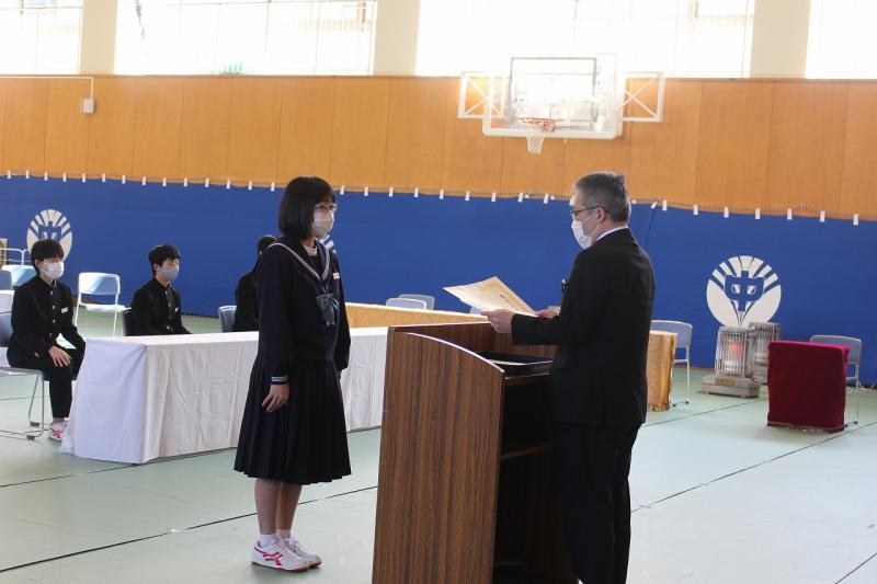 贈る表彰式が行われました。準2級に合格した3年宮腰さん、