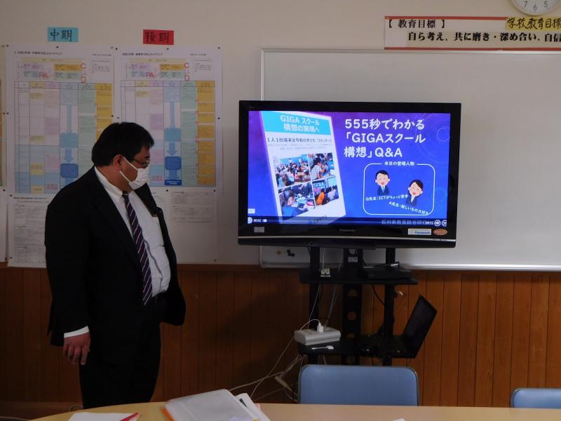 GIGAスクール校内研修推進リーダーを中心に「クラスルーム」の使い方について、研修を行いました。