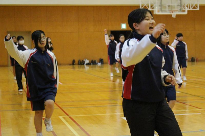 岸先生、田渕先生、手崎先生の指導のもと、エアロビクスダンスによる