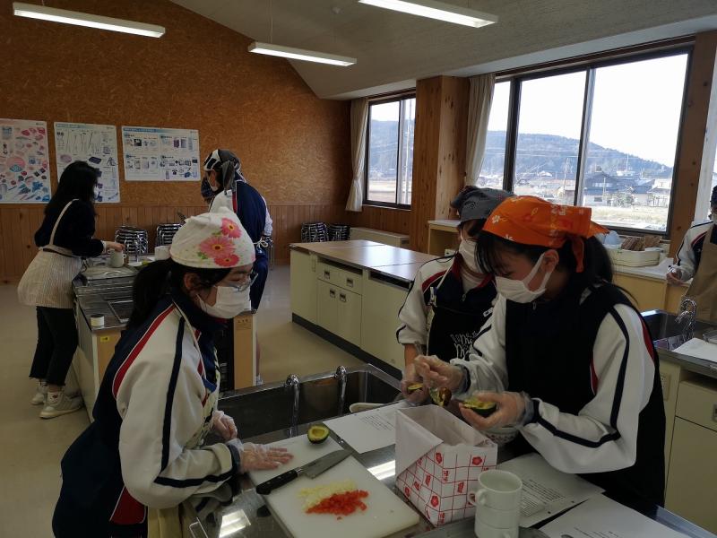 27日金曜日にALTのJulia先生の指導で「ガカモーレ」というアボカドのディップソースを作りました。