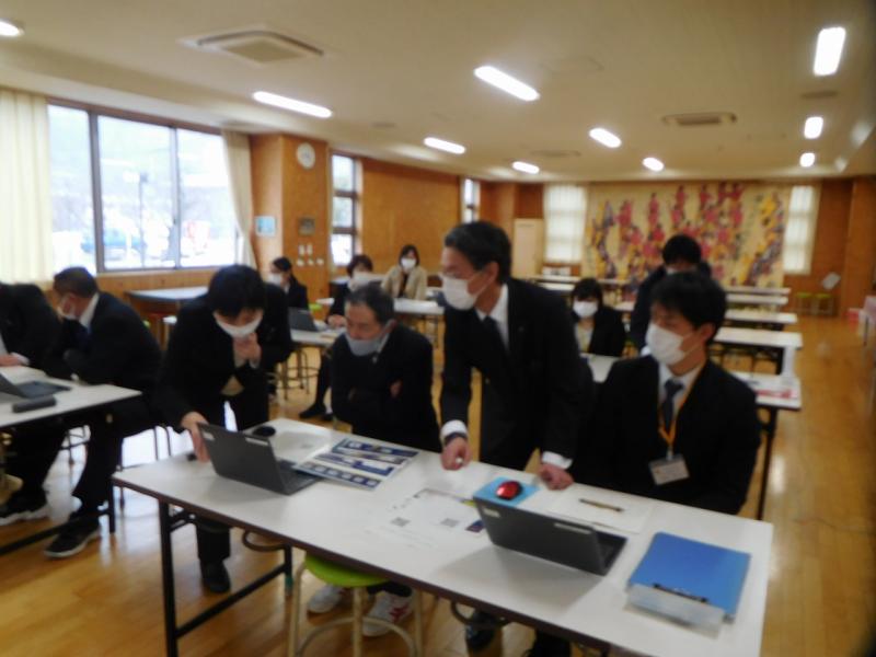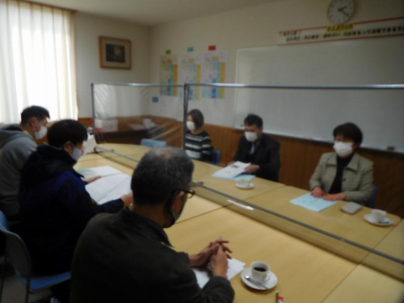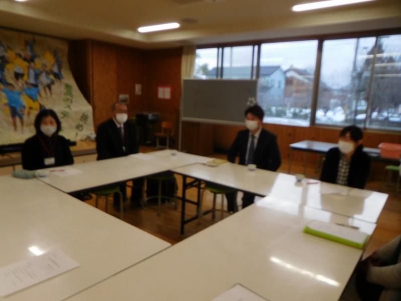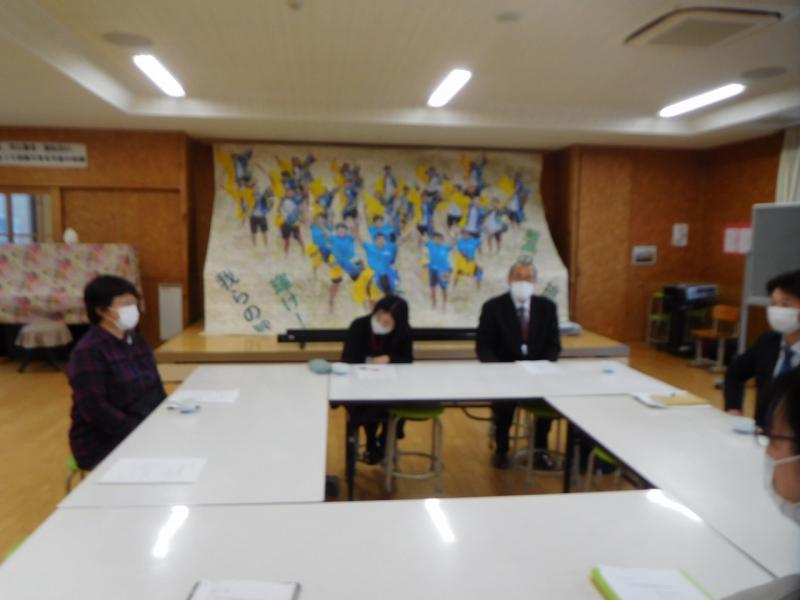 2021年2月15日 08時10分学校評議員3名、PTA役員3名の方に、学校評価(後期)をして