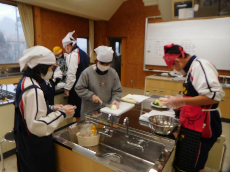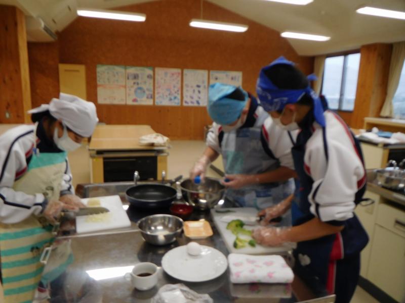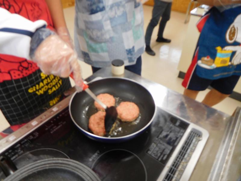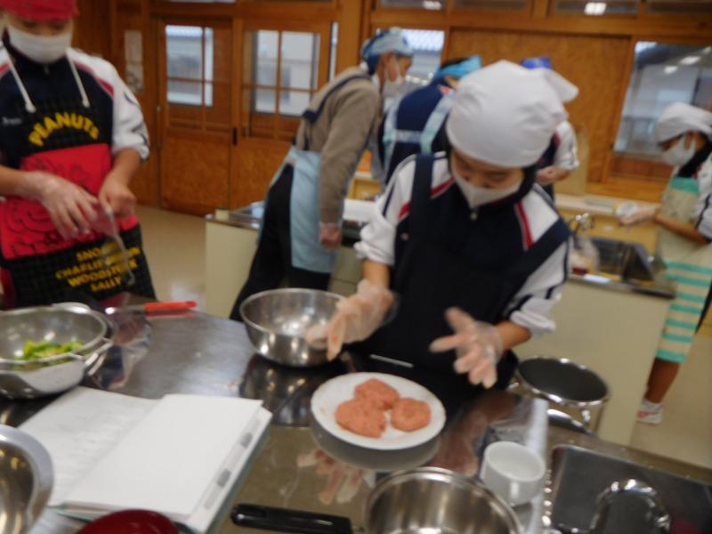 1年家庭科で、ハンバーグの調理実習を行いました。