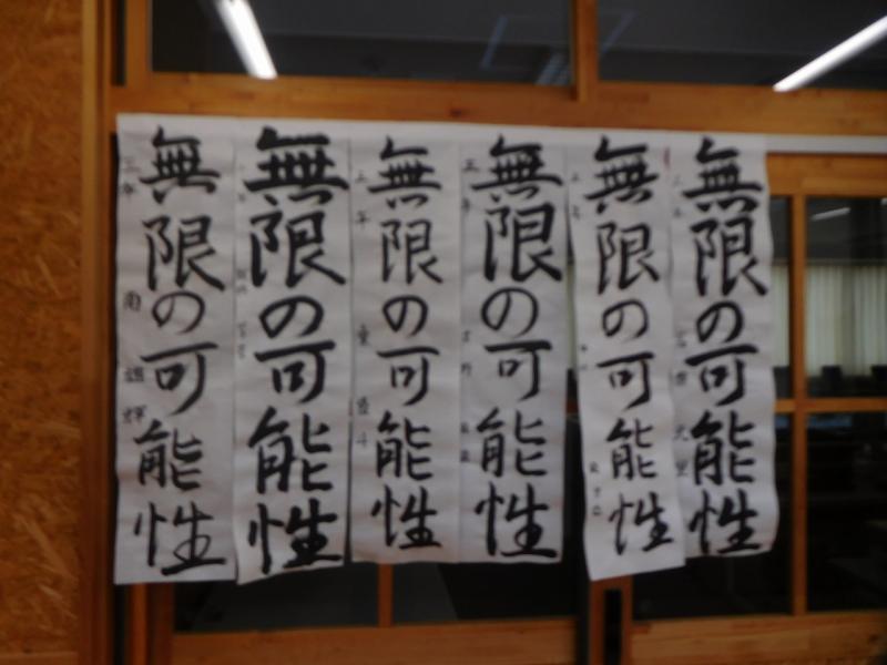 1年「不言実行」 2年「新たな目標」 3年「無限の可能性」でした。