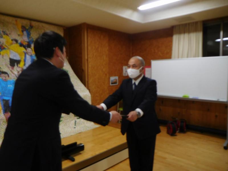 また、前PTA会長の友延さんの市P連功労者表彰を南会長からしていただきました。