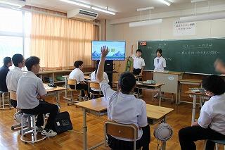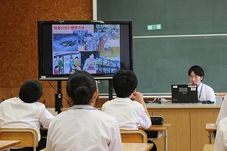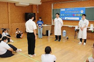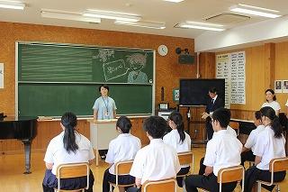 7月15日(火)の6時間目に、管理栄養士の小泉先生、高谷先生、能登北部保健福祉センターの滝川先生を講師にお招きして、全校を対象にした薬物乱用防止教室が行われました。