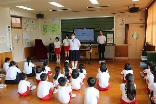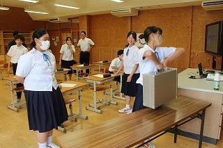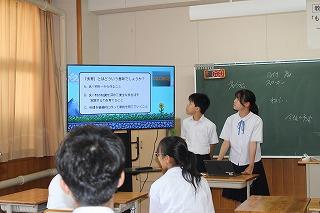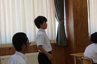 9月4日(木)の放課後に、生徒集会が行われました。今回は、生徒会健康担当による「食」と「熱中症」に関するクイズ形式での発表でした。様々な問いに対し、生徒たちはペアで話し合いながら熱中症を予防することの大切さについて改めて考えていました。