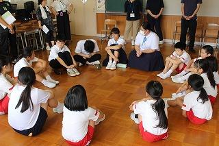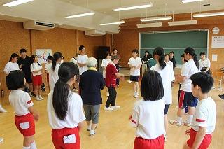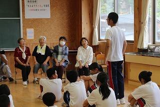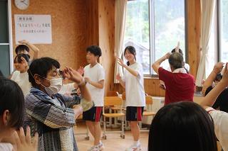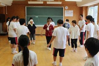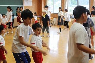 7月17日(木)の5時間目に、町野小学校と東陽中学校の全校児童生徒を対象に、「ちょんがり節」の練習が行われました。地元婦人会の方々を講師にお招きし、8月の「ふるさと五千人の祭典」に向けて、踊りを教えていただきました。