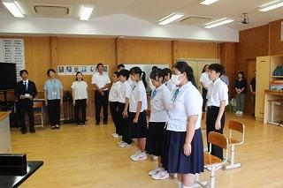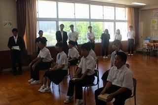 東陽中学校校舎での学校生活も3カ月が過ぎ、本日、1学期終業式を行いました。校長先生からは、「地域の行事や活動に積極的に参加をし、地域の方やたくさんの方々との交流を通して、学校生活の中では体験できないことにたくさん挑戦してほしい」とのお話がありました。