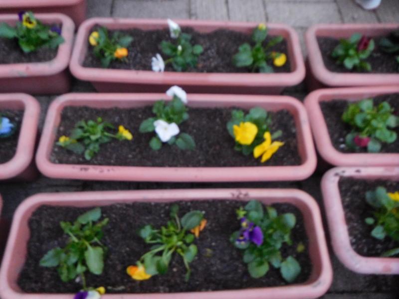 文化部の生徒が、玄関前のプランターに「パンジー」と「ビオラ」の花植えをしてくれました。