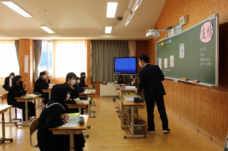 道徳の研究授業が3年生のクラスで行われ、市内の道徳部会の先生方も参観に来られました。