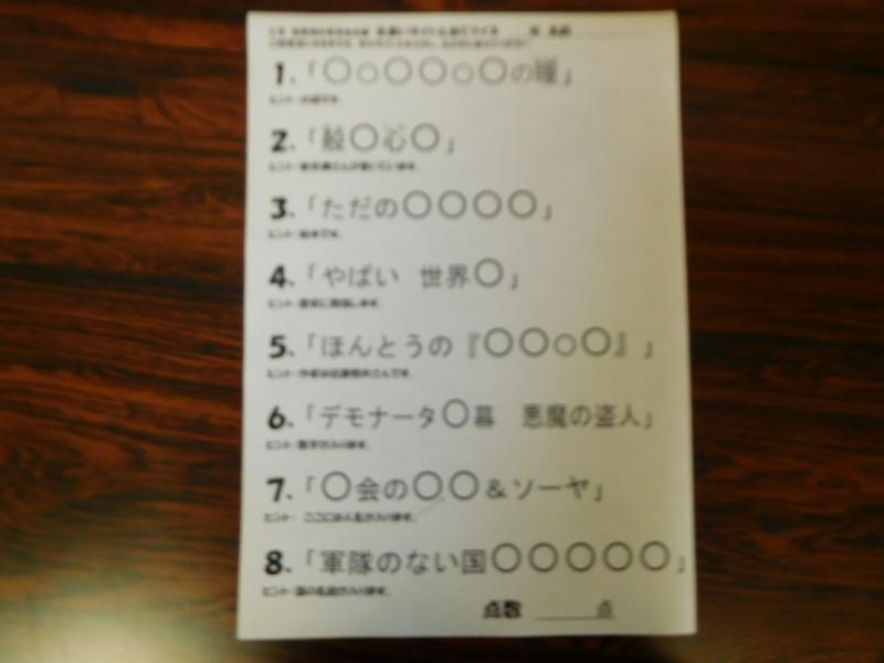 図書掲示委員会が、図書室をたくさん活用してもらう目的で、虫食いタイトル当てクイズを企画してくれました。