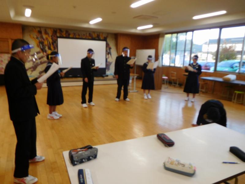 2020年10月26日 08時40分奥能登教育事務所 指導主事 薮下様をお迎えして、1年国語科の研究授業を行いました。