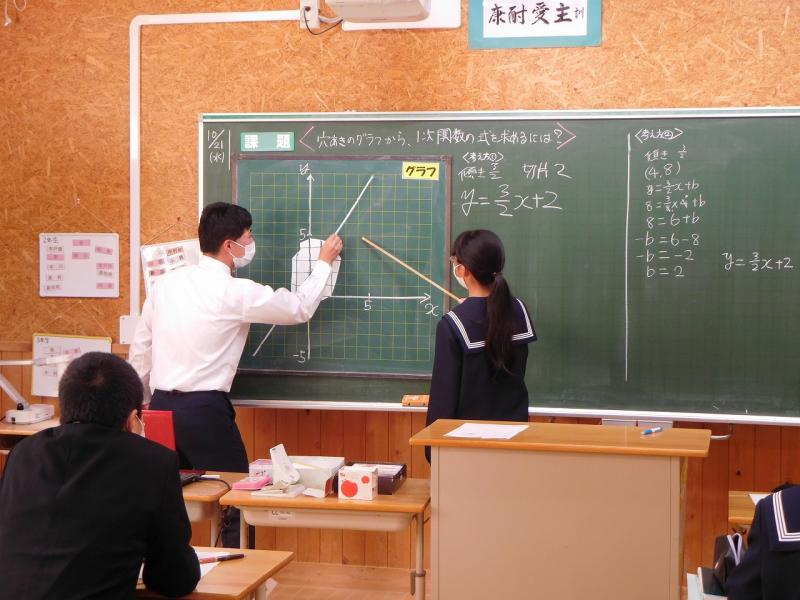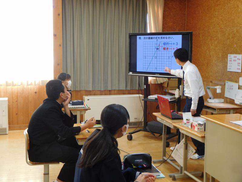2年 数学 1次関数で校内研究授業を行いました。