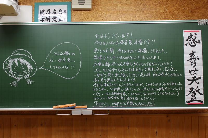 明日はいよいよ初めての小中合同体育祭です。町野小学校の1年生から中学生へのメッセージが届きました。