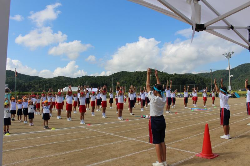 9月5日(土)、晴天の中、保育園・小学校・中学校の合同体育祭が行われました。