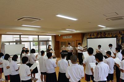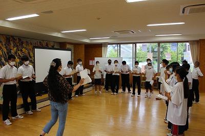 この曲を輪島市内の中高生が歌でつないで動画を作成するために、合唱練習を始めました。
