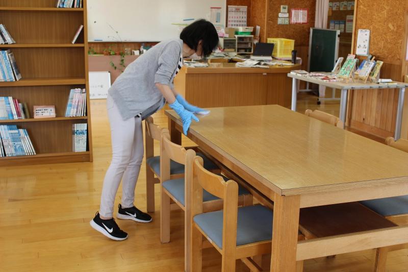 先生たちも、学校内の消毒や学習動画づくりに励んでいます。