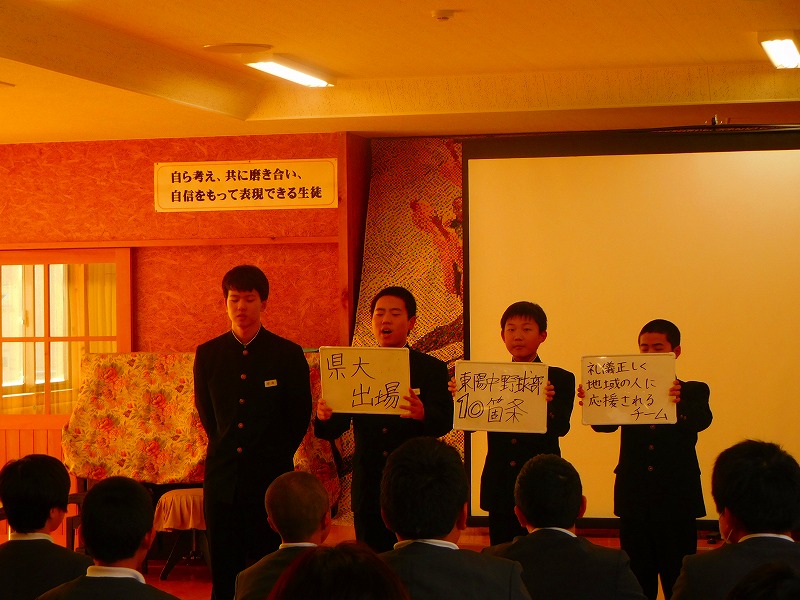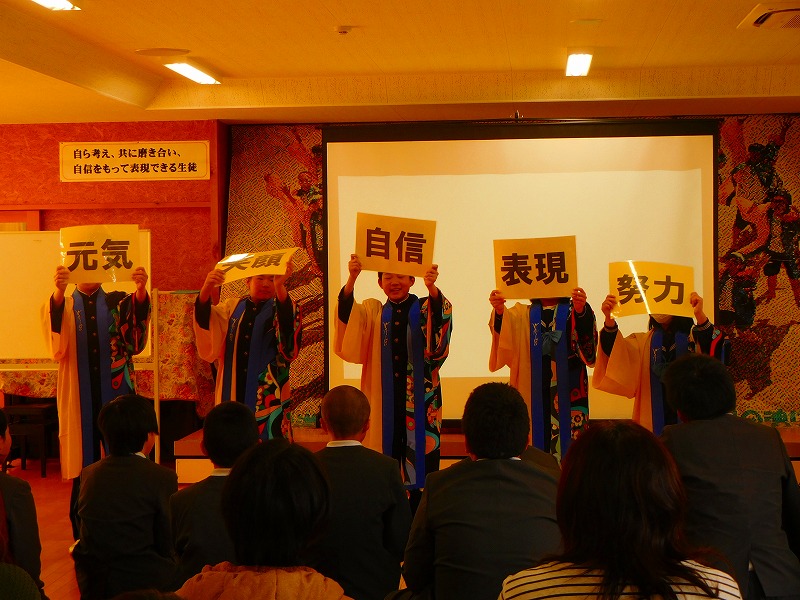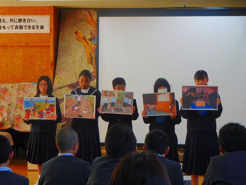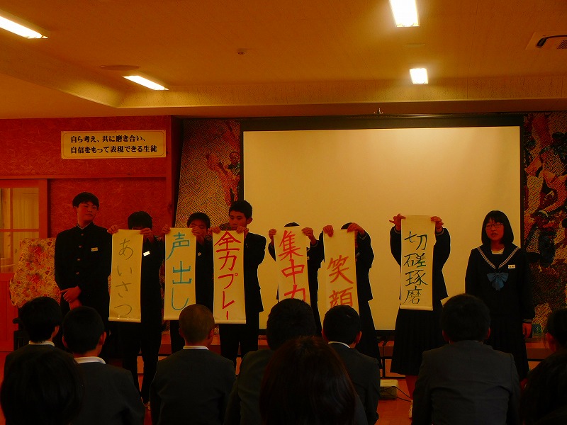 1・2年生が中心になって東陽中の紹介を行いました。